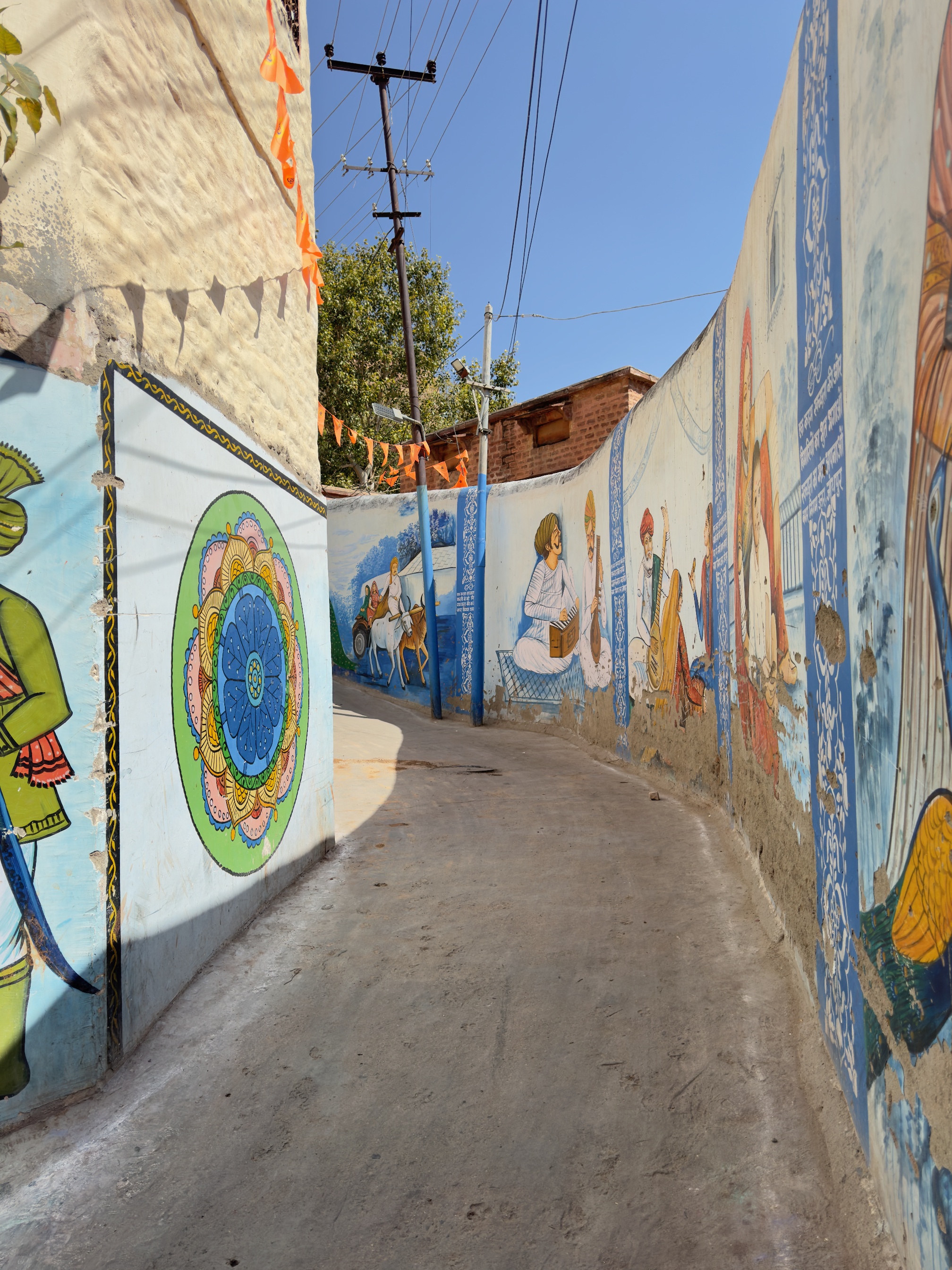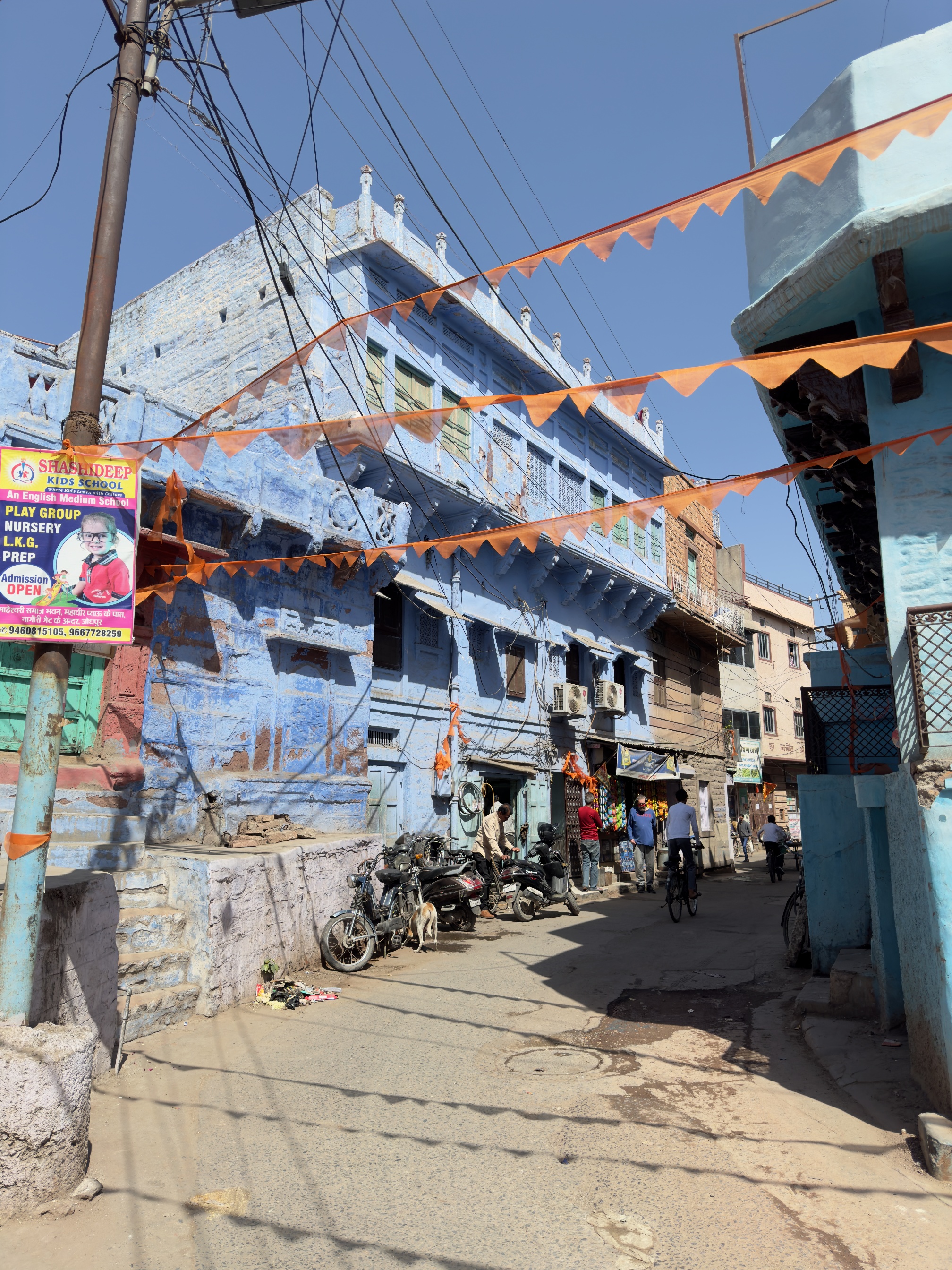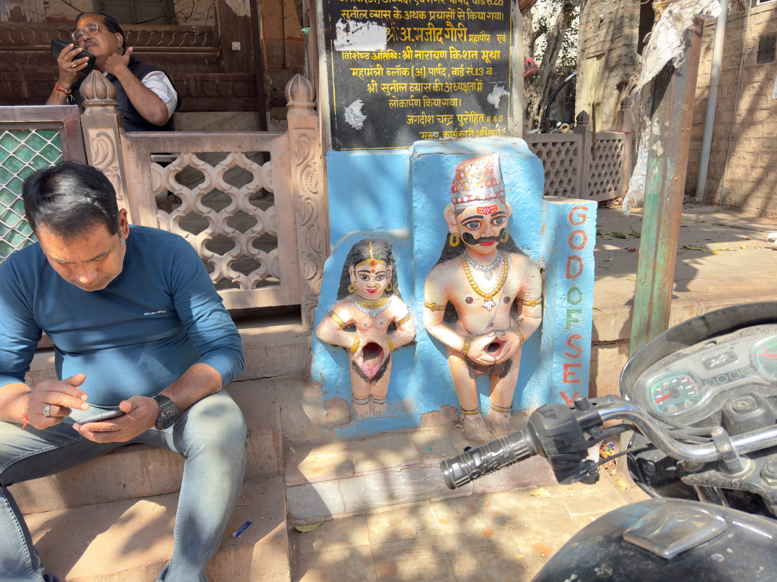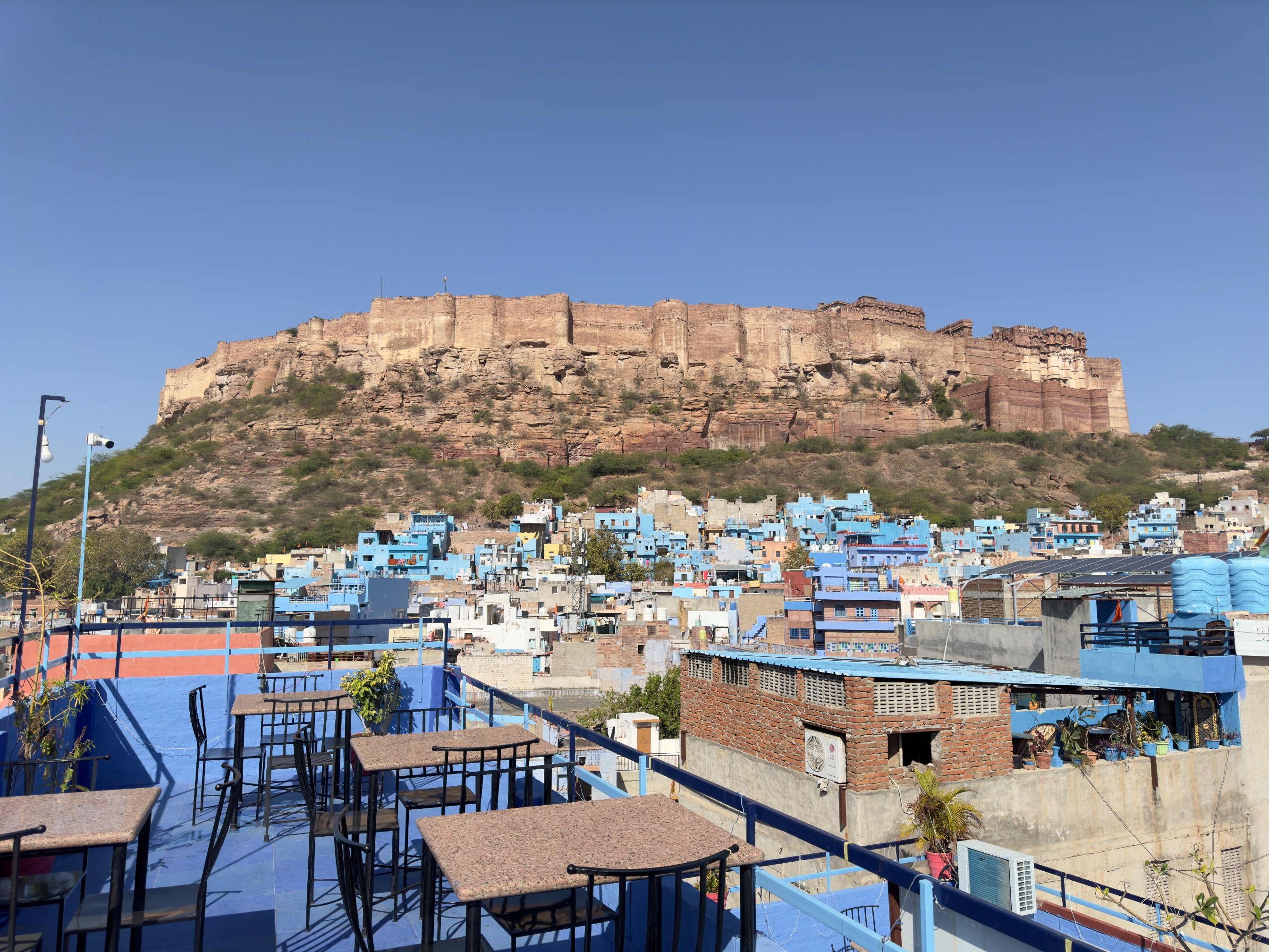 吃完早餐後就到路程約1公里的地方看特色壁畫和性神廟(God of Sex Shrine)參觀,接著就搭嘟嘟車前往看起來很壯觀的梅蘭加爾城堡(Mehrangarh Fort)參觀,在民宿屋頂看起來非常巨大,車資是150盧比算有點貴,不過還是可以接受,上去後就買了門票並且有附贈的中文語音導覽可以聆聽,可以更加了解當初這座城堡的歷史,當初竟然有活人獻祭被封印在城堡的地基裡,並且城門旁有許多隨著國王陪葬妻妾的手印,讓這座城堡染上血腥的色彩,不過城堡內部有許多漂亮的建築與館藏,但大多也是走馬看花,沒有非常深刻的印象就是了,唯一深刻的印象是這座城堡未曾被攻陷過,且王后曾經出訪英格蘭,除此之外,城堡確實是很漂亮的制高點,可以看到真正的藍色之城。看完整個焦特布爾的景色後就沿著小路下山,因為又開始流鼻水頭痛,就回飯店睡覺休息。