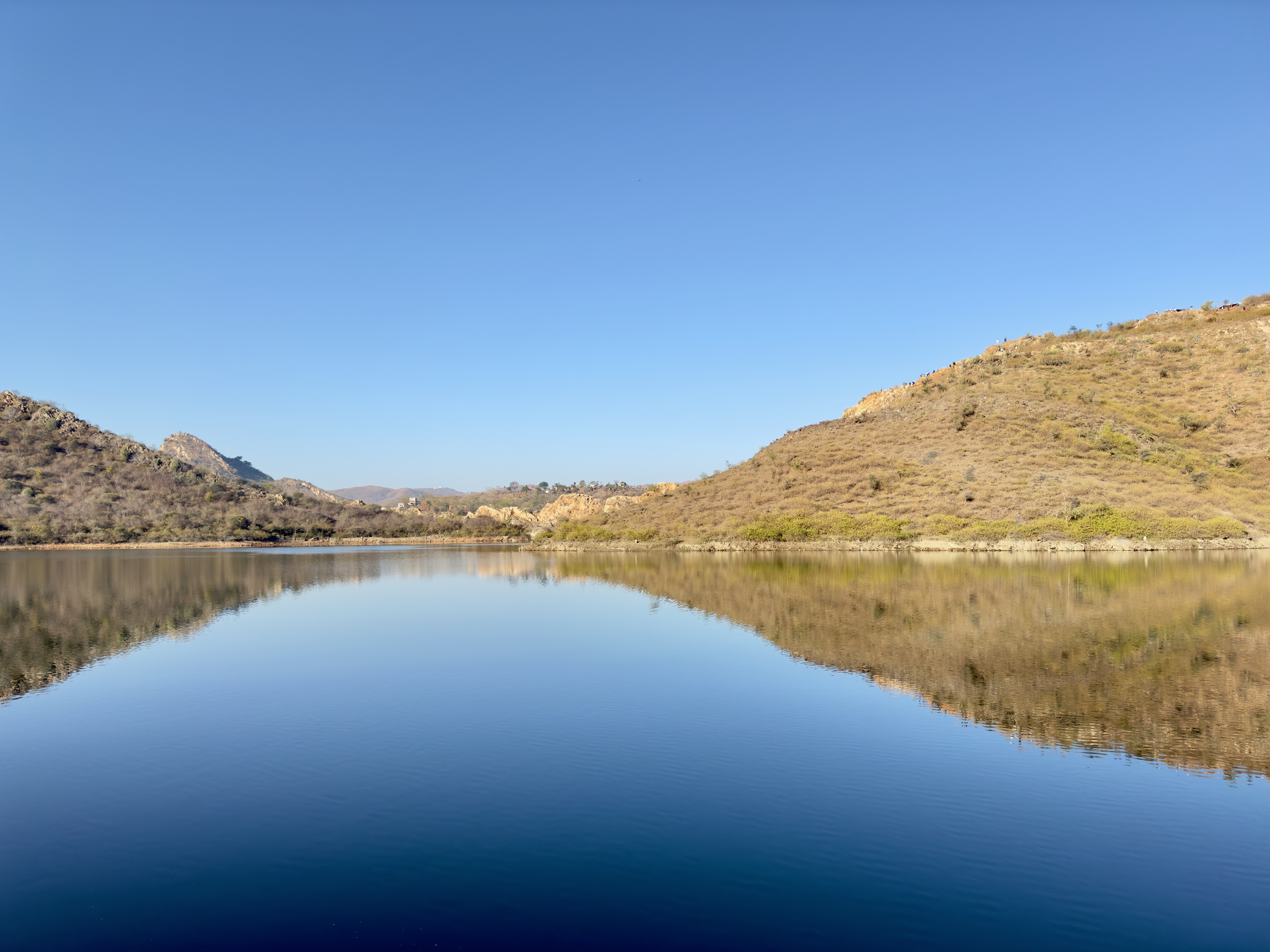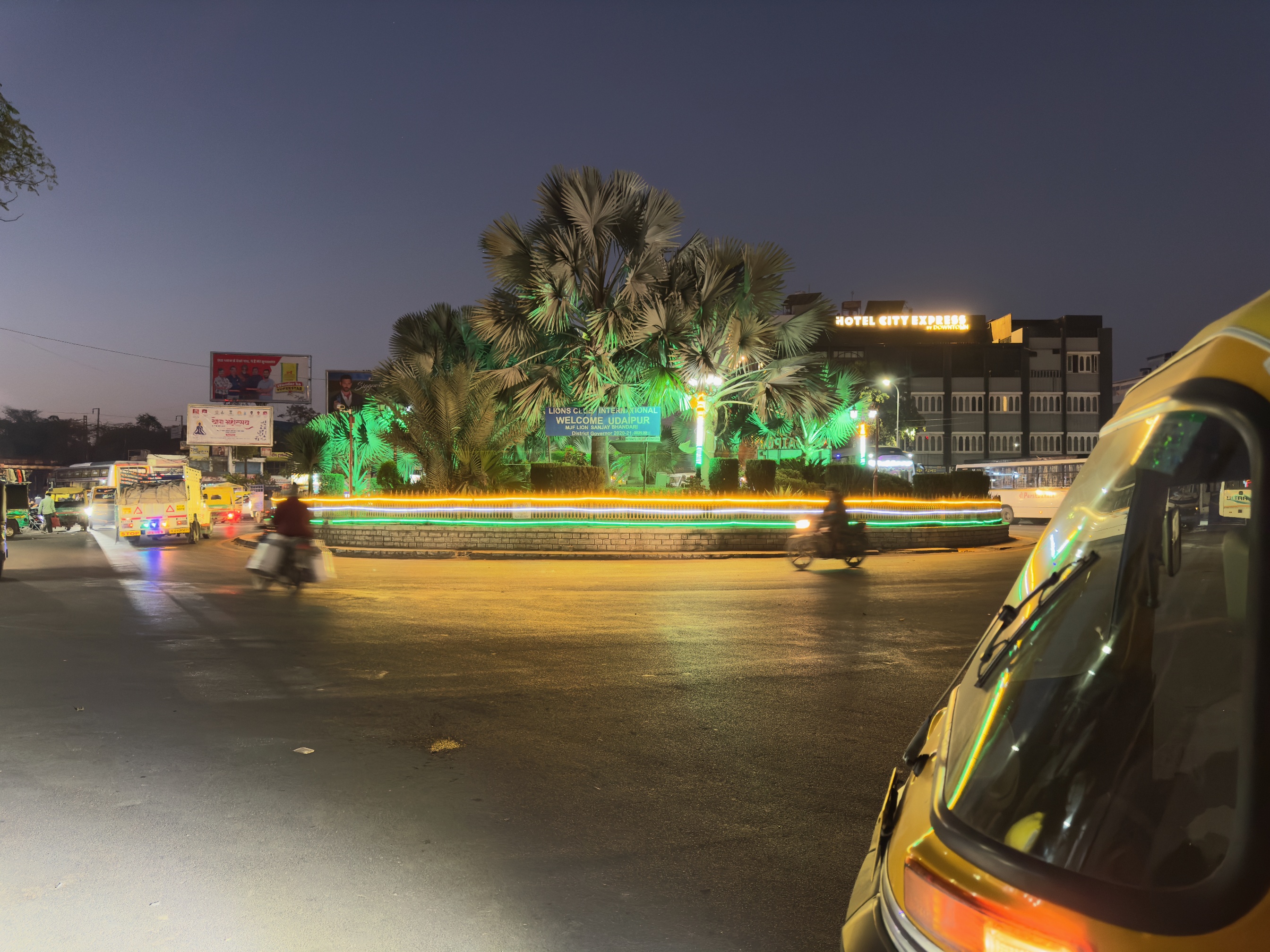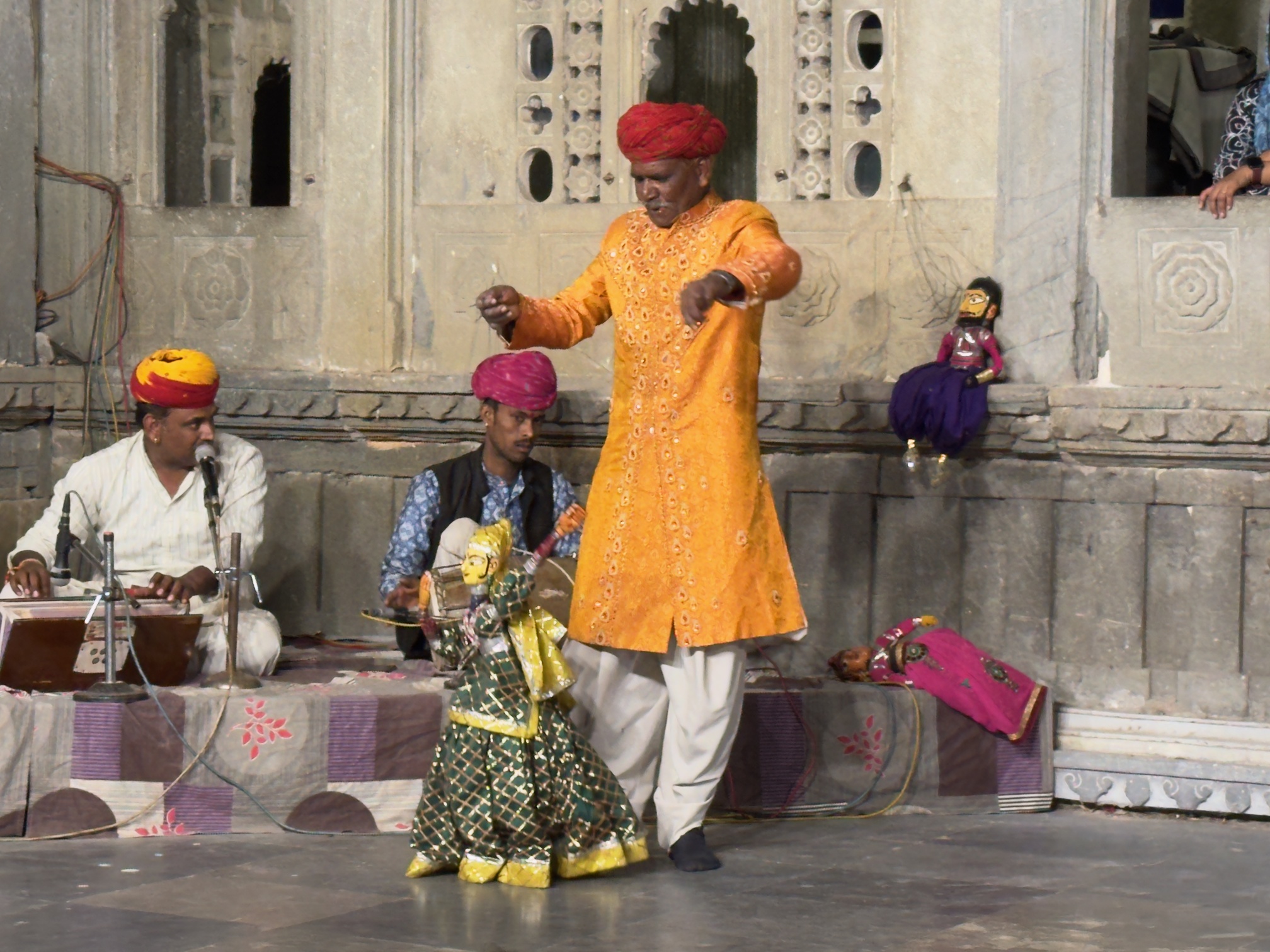 因為預訂了隔天看日出行程,本來預計六點就要從青旅出發,結果因為第一天遇到的印度女生遲到半小時,導致日出行程整個被延誤,而因為是騎摩托車過去,去程是被一個20歲的工作人員印度小哥載,最讓我驚奇的是,在上山的時候,他竟然會掏出手機開始錄影,完全不在乎後座乘客的安危,心裡就在想你可以經常看到何必再騎車的時候錄影,而且我們這台摩托車上山爬坡的時候不給力,只能緩慢怠速移動,真是讓人感到不悅,由於印度女生遲到導致出發延誤,讓我們錯過太陽從山頭出現的瞬間,等到我們到山頂時,太陽早已升起,不過撇除人和交通的問題,看日出的山頂真的很美,天空的漸層從橙紅到青藍,著實讓人著迷,而且等到太陽出現後就也不那麼寒冷,看完日出後也順路看了一些景點,到另一個山頭去看另一個湖(Badi Lake),恰好遇到有兩組新人在拍婚紗,平靜的湖面倒映著圍繞的山頭,這裡確實是相當的美。而這趟日出之旅並不是那麼順利,這當中也有意外發生,在我們回青旅的路上,不知道為什麼身為工作人員的印度小哥不騎最後一個押後,偏偏要一直超車跟在老闆的後面,而靠近市區的路況又相當混亂且繁雜,導致後面有一個英國嬉皮小哥騎到一半失蹤,老闆只好繞回去找他,幸好最後他有平安出現,我們這才一起回青旅,為這次的日出之旅畫下驚奇且平安的句點。而最後一天在烏代浦的晚上,我參加附近私人博物館舉辦的晚會表演,坐在我旁邊的是一個韓國年年輕小哥,一開始他還用韓文問我是不是韓國人,可能是亞洲人太少了他才這樣覺得,而晚會展示一些關於拉賈斯坦邦的一些舞蹈或是木偶表演,有些用火罐頂在頭上跳舞,有些以高難度的動作用嘴巴將地上的鈔票拾起,最後壓軸更是在頭上頂著多個罐子跳舞,整個表演相當精彩。